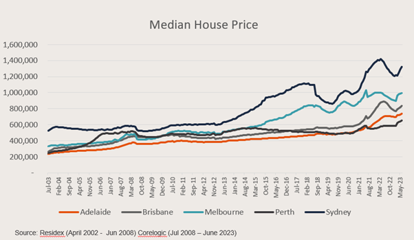 As per CoreLogic, the values of houses in Sydney have witnessed a remarkable growth over recent decades, reaching $1.36 million. Over the past two decades, houses have grown at an annual rate of 5.8%, and units at 3.8%.